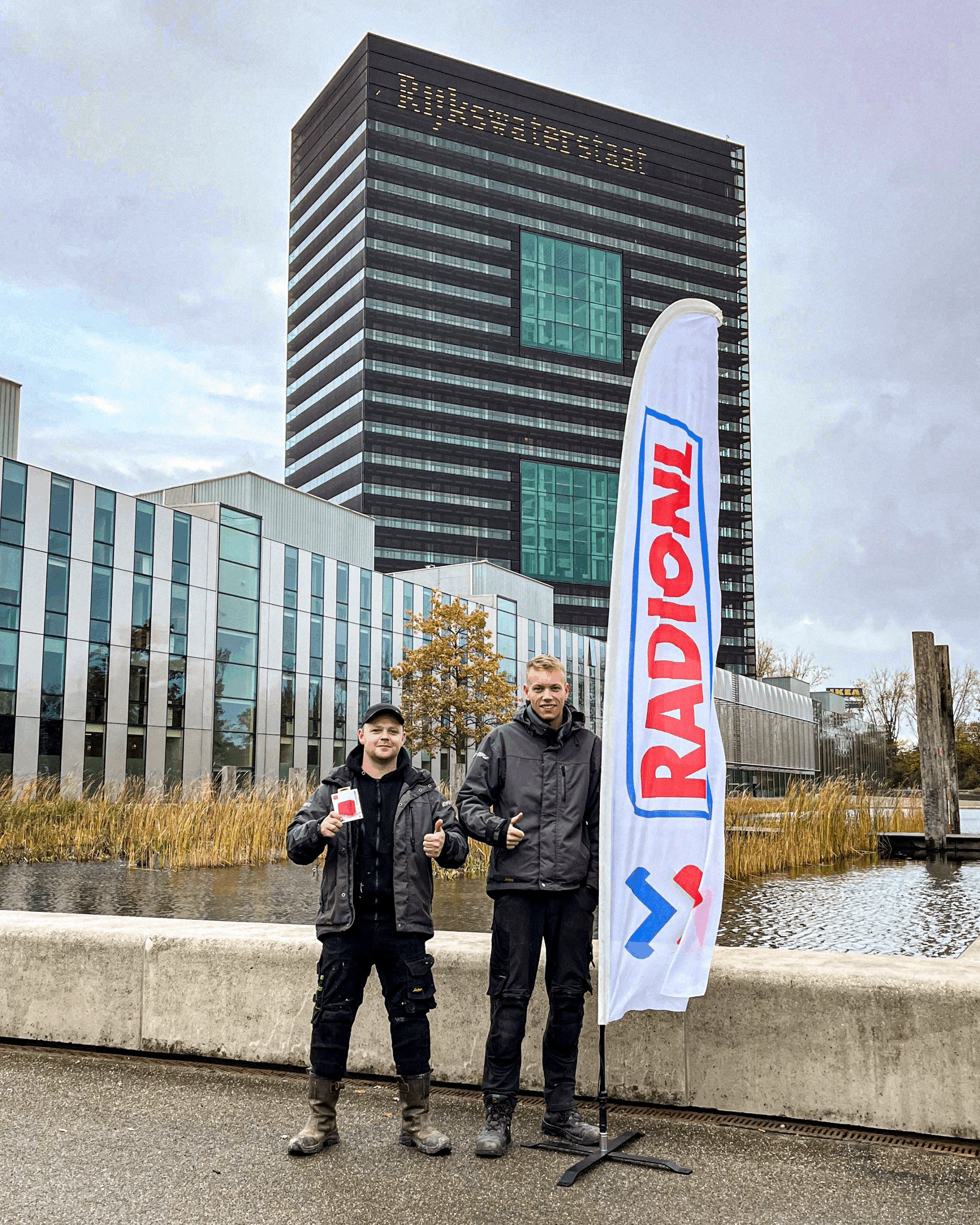 Op de locatie â bij het Rijkswaterstaat-gebouw â vinden ze een fles met het RADIONL-logo erop. In de fles zit een briefje met daarop een keuze: Kiezen of Delen.