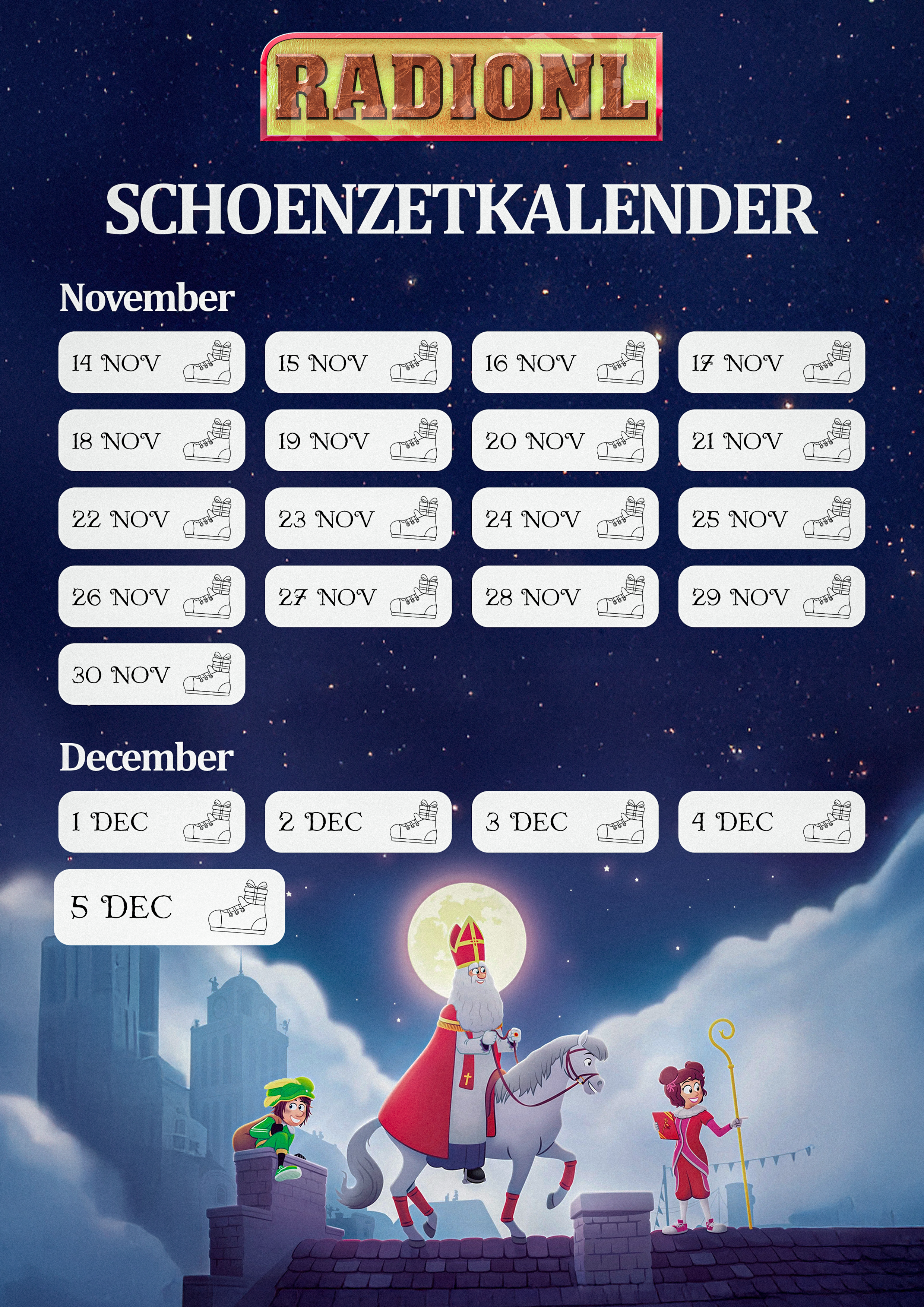 Sinterklaas is weer in het land en heeft iets leuks bedacht: de RADIONL Schoenzetkalender!